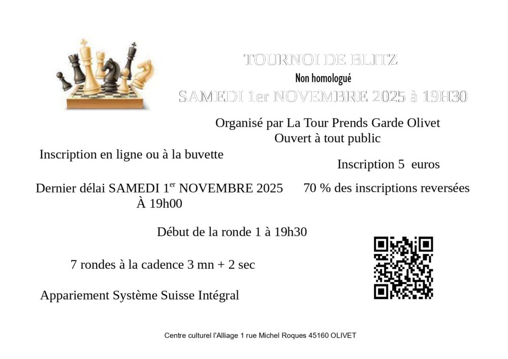 Clôture des inscriptions : samedi 1er novembre à 19h00